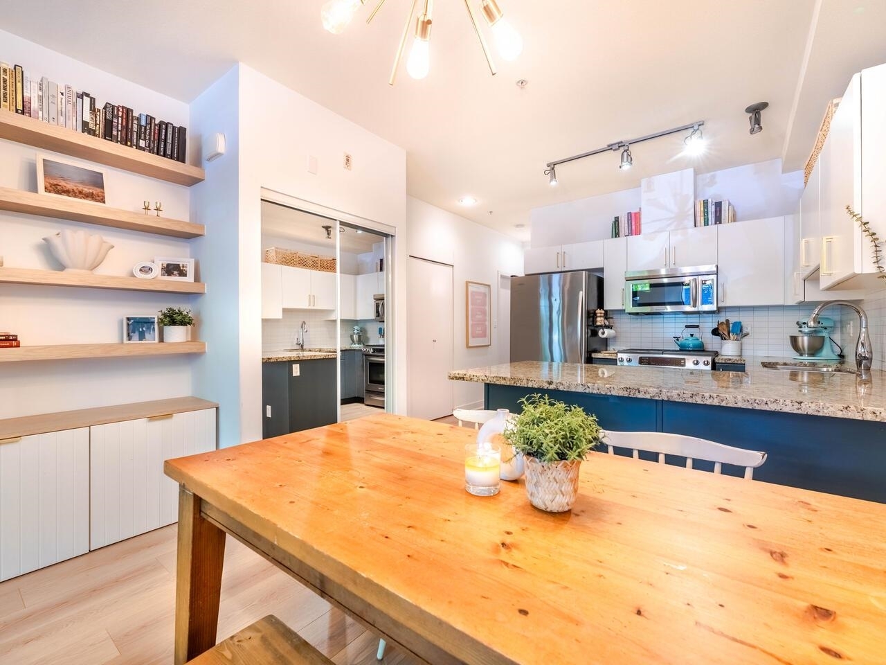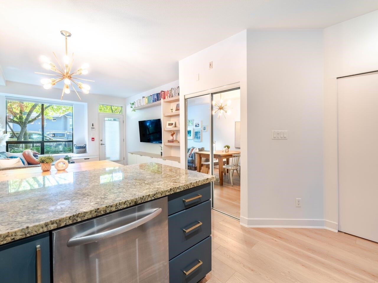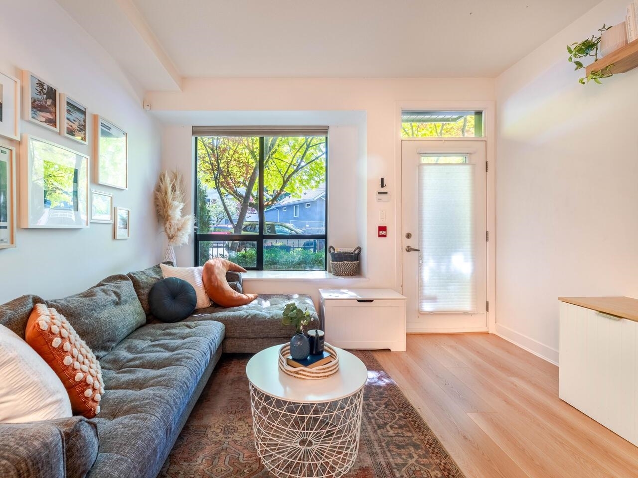 Located in the highly desirable, family friendly complex - The Works - this 2 bed/1 bath townhome is both inviting and stylish! One of the best units in the complex, it has an oversized garden patio, opening onto the greenery of the common space – where kids and families can play & hang out. A large, stylish kitchen and open concept Living/Dining area is complemented by a custom built-in entertainment unit & large picture window. This home is perfect for couples, young families or downsizers. A proactive & well managed strata who are community focused have created a wonderful place to live in the heart of Commercial Street and A+ amenities within walking distance. Bonus – 2 parking stalls; storage locker, AC Allowed + Pet friendly!